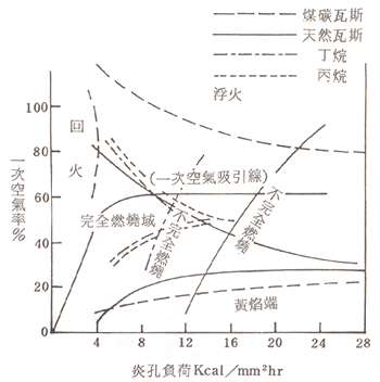 各種瓦斯之爆炸 (燃燒) 界限 |